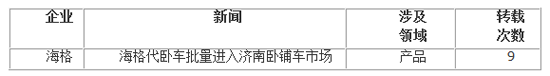 各家企業(yè)轉(zhuǎn)載量最多的一條新聞詳見下表: