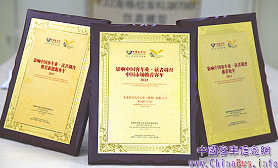 2012年12月21日,“第七屆影響中國(guó)客車業(yè)2012—2013年度客車行業(yè)讀者調(diào)查評(píng)選活動(dòng)”頒獎(jiǎng)典禮在北京隆重舉行,海格客車憑借2012年優(yōu)異的表現(xiàn),一舉摘得了2013年度“國(guó)內(nèi)市場(chǎng)、海外市場(chǎng)、新能源客車、專用校車”等四項(xiàng)大獎(jiǎng)。