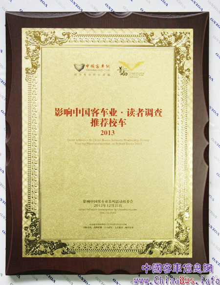 “第七屆影響中國(guó)客車(chē)業(yè)2012—2013年度客車(chē)行業(yè)讀者調(diào)查評(píng)選活動(dòng)” 由中國(guó)客車(chē)網(wǎng)和中國(guó)客車(chē)英文網(wǎng)主辦,經(jīng)近百萬(wàn)有效讀者的參與投票,由客運(yùn)企業(yè)高層領(lǐng)導(dǎo)、客車(chē)用戶代表、客車(chē)行業(yè)資深行業(yè)專家、主流媒體領(lǐng)導(dǎo)、部分客車(chē)企業(yè)高層領(lǐng)導(dǎo)出任的“專家評(píng)委”認(rèn)真評(píng)議后得出的結(jié)論。
