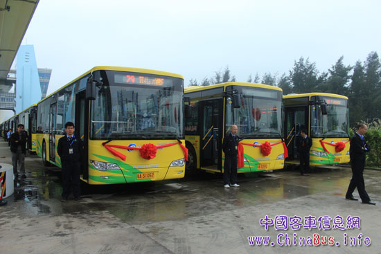 繼2012年11月份,22輛大金龍純電動公交車XMQ6127AGBEV2順利交付使用后,12月27日,在??诠患瘓F“第四批節(jié)能與新能源公交車出租汽車投放儀式”上,35輛大金龍混合動力公交車XMQ6106AGHEV正式投入運營,??凇熬G色公交”再添生力軍。