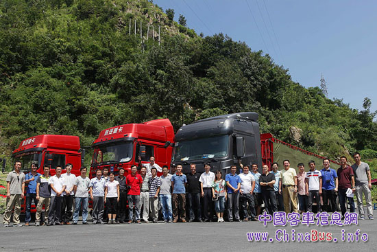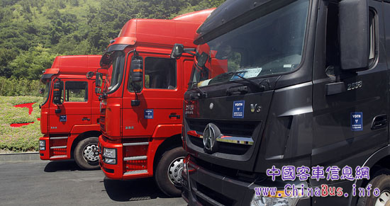 作為國內(nèi)重要的重型卡車生產(chǎn)廠家,陜西重汽和北奔重汽,非常關(guān)心公路物流運輸?shù)陌踩院徒?jīng)濟性,為了配合四川交院和長安大學(xué)完成這次課題研究,都安排了其主力車型參加了此次雅西高速公路測試。為了能夠符合實際運輸情況,測試車輛的牽引總重都達到了法規(guī)的上限,即滿載55噸。