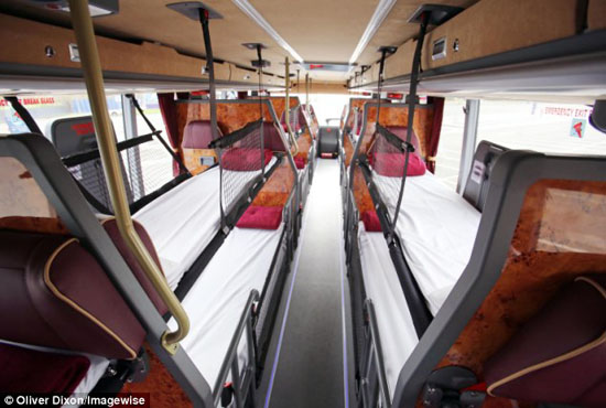 這批客車由十輛雙層客車組成,車上配有53個豪華皮革座椅,晚上還可以展開成為床具。除了專座專鋪,每位乘客還能獲得免費點心和旅行套裝——包括牙刷、牙膏和一副眼罩。此外,乘客還可以選擇要一條毯子或是一件外罩的連體衣。
