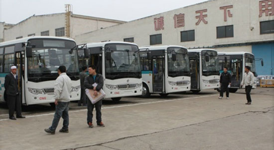 整裝待發(fā)的東風(fēng)CNG公交車