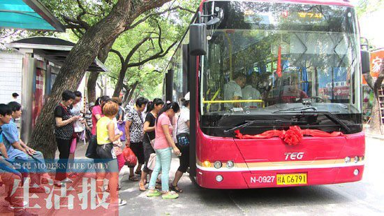 雖然乘車有些尷尬,但能乘坐空調(diào)車,許多乘客還是很高興?!艾F(xiàn)在天氣這么熱,坐公交車能‘嘆’上空調(diào),多跑一趟也無所謂啦。”一名乘客說。