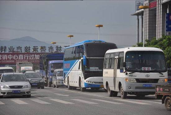 龍眠山路上的長(zhǎng)途客運(yùn)車(chē)輛