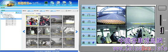 在海格校車安全管理系統(tǒng)實(shí)際運(yùn)營的感知層階段,通過北斗或GPS數(shù)據(jù)、CAN數(shù)據(jù)、郵箱液位、視頻抓拍、學(xué)生刷卡等放面的采集數(shù)據(jù),將數(shù)據(jù)上傳服務(wù)器,為各種分析提供基礎(chǔ)數(shù)據(jù)。在記者的要求下,G-BOS工程師隨機(jī)監(jiān)控了一輛正在運(yùn)營的校車,通過倒車、車內(nèi)、車門、車前、車后五個(gè)攝像頭的畫面,我們就可以在G-BOS網(wǎng)站全方位監(jiān)視到此刻校車運(yùn)行的畫面。