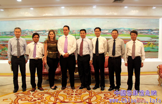 左起:海翼集團(tuán)副總經(jīng)理、金龍汽車集團(tuán)董事長、大金龍董事長谷濤,玻利維亞記者團(tuán)EDUARDO, JIMENA,拉巴斯市長顧問GUSTAVO,廈門市副市長李棟梁、廈門市政府副秘書長徐文東、經(jīng)發(fā)局副局長鄧建華,海翼集團(tuán)黨委書記、董事長、金龍汽車集團(tuán)黨委書記郭清泉