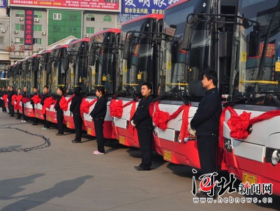 今天上午9時(shí),97部CNG天然氣公交車(chē)啟用儀式在衡水火車(chē)站廣場(chǎng)舉行。