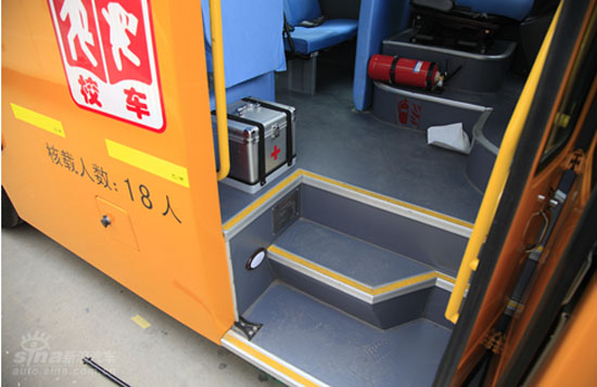 出于安全角度考慮,宇通小飛俠不僅采用三級(jí)踏板,踏步低,孩子們上下車時(shí)不易磕碰。而且將滅火器放置在駕駛員座椅的旁邊,伸手可得,更加方便緊急情況下使用。另外,如果出現(xiàn)學(xué)童受傷情況,車內(nèi)還有一個(gè)銀白色的醫(yī)藥箱,里面放置了常用藥品、棉簽以及紗布等醫(yī)療應(yīng)急裝備。