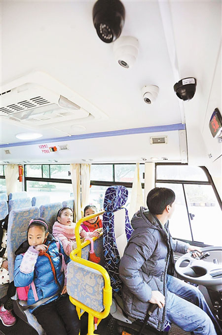 1月2日,重慶渝北區(qū)第三實(shí)驗(yàn)小學(xué),同學(xué)們排隊(duì)乘校車回家。重慶渝北區(qū)教委投入近50萬元,在轄區(qū)68臺(tái)審核運(yùn)行的校車上安裝衛(wèi)星定位裝置——3G車載視頻一體機(jī),目前已全面投入運(yùn)行。每臺(tái)校車上安裝了4個(gè)攝像頭,車?yán)?、車外都能得到有效監(jiān)控。車輛啟動(dòng)后,4個(gè)攝像頭拍到的實(shí)時(shí)畫面信號(hào)將同步被傳送到學(xué)校和區(qū)教委監(jiān)控終端。該校車視頻監(jiān)控系統(tǒng)可隨時(shí)監(jiān)控跟車教師是否履行職責(zé)、駕駛員是否文明安全駕駛等,以確保校車上孩子們的安全。