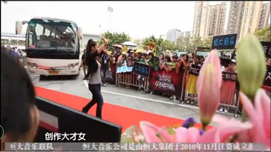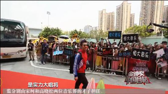 為了歡迎即將參賽中國音超的偶像,不少粉絲已經(jīng)等候在現(xiàn)場。