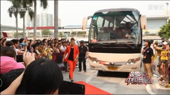 樂華娛樂的80后CEO杜華一下車就驚艷全場,可謂是樂華娛樂的最佳形象代言。而旁邊的宇通客車憑借美觀大氣的外觀、舒適安全的性能,成為明星背后的明星。