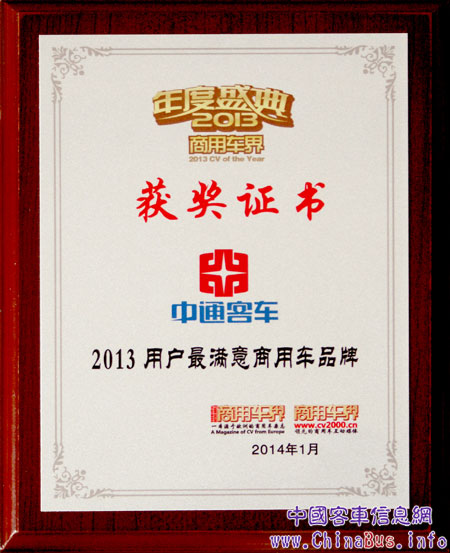 在此次盛典上,中通客車再次被授予“用戶滿意商用車品牌”,這已是中通客車連續(xù)第三年獲此殊榮。