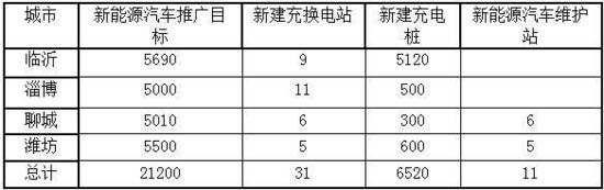 根據(jù)山東省財(cái)政廳提供的信息,濰坊等4市各自的新能源汽車及基礎(chǔ)設(shè)施推廣目標(biāo)如下表所示。