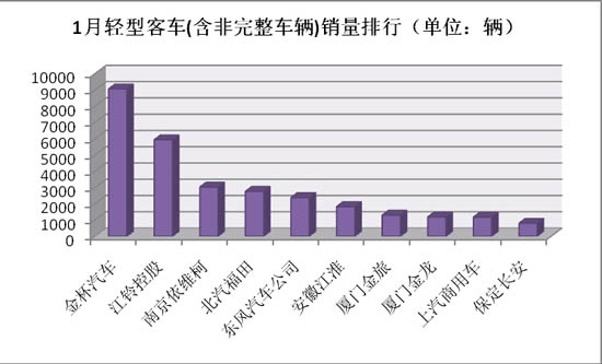 2014年1月輕型客車(含非完整車輛)銷量排行(單位:輛)