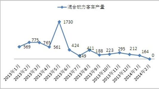 2014年2月,國(guó)內(nèi)汽車(chē)生產(chǎn)企業(yè)共生產(chǎn)節(jié)能與新能源汽車(chē)(含EV 、PHEV、 HEV)1837輛,較上月環(huán)比下降42.41%,較上一年2月同比持平。此外,混合動(dòng)力乘用車(chē)進(jìn)口數(shù)量為1914輛,純電動(dòng)乘用車(chē)進(jìn)口量為零。由于2月天數(shù)僅為28天,天數(shù)全年最少,且又正逢農(nóng)歷春節(jié),所以本月產(chǎn)量不足2000輛也屬正常。