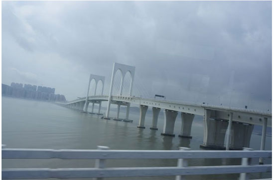 奔馳在西灣跨海大橋上的純電動穿梭巴士