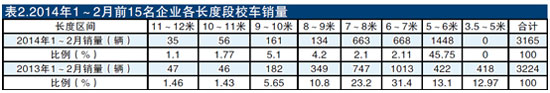 根據(jù)中國客車統(tǒng)計信息網(wǎng)對我國50家主流客車企業(yè)的統(tǒng)計,今年1~2月共銷售校車3226輛,比去年同期的3424輛下降了5.8%。1~2月校車銷量的同比下降有些出乎人們的意料,這也說明1~2月的校車市場比較低迷。