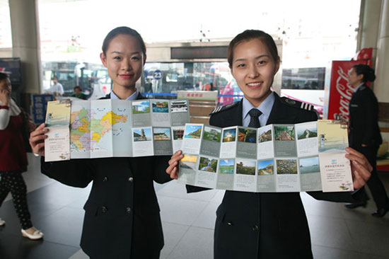“五•一”的腳步愈加臨近,很多旅客朋友都選擇在“五•一”期間外出游玩,山東省內(nèi)游成為大部分旅客的首選。為了方便旅客在節(jié)日期間出游,濟(jì)南長(zhǎng)途汽車總站精心制作了暢游山東旅游手冊(cè),免費(fèi)饋贈(zèng)給來(lái)總站乘車的旅客朋友。手冊(cè)內(nèi)囊括了省內(nèi)20余處景點(diǎn)的圖片、文字介紹以及相關(guān)線路的發(fā)車班次及時(shí)間,不僅為旅客出游提供了參考,還有利于旅客合理安排節(jié)日期間的出行計(jì)劃。(李昂)
