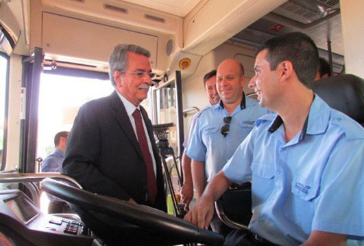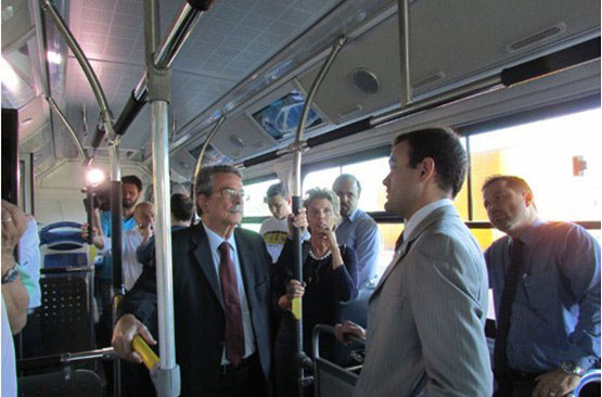 2014年3月27日:圣保羅州索羅卡巴市(Sorocaba),當?shù)孛襟w報道,今日該市的100快速公交線路上迎來了一位“稀客”,來自我們純電動大巴為該市市民首次展示了零排放綠色巴士的風采。該線路由索羅卡巴市公會聯(lián)盟運營,連接了公交接駁總站與SantoAntonio站。試運行啟動活動于當天上午八點半正式開始,索羅卡巴市市長AntonioCarlos Pannunzio親自來到公交總站,作為該市首批純電動大巴乘客試乘體驗。