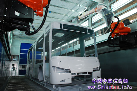隨著客車產(chǎn)品批量的增加及人們對(duì)環(huán)保、健康意識(shí)的不斷增強(qiáng),涂裝生產(chǎn)線工作環(huán)境差、勞動(dòng)強(qiáng)度大的工序?qū)⒅鸩矫媾R用工緊張、成本居高的雙重困難境地,因此其作業(yè)方式被自動(dòng)化技術(shù)所取代成為時(shí)代發(fā)展的必然選擇。繼整車電泳漆技術(shù)在客車涂裝中的“風(fēng)靡”應(yīng)用,在乘用車領(lǐng)域應(yīng)用日漸成熟的機(jī)器人噴涂技術(shù)也開始在客車行業(yè)嶄露頭角。