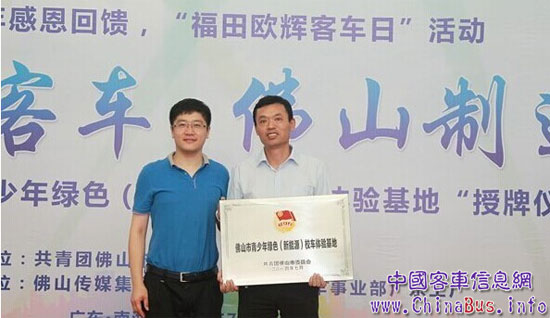 7月17日,以“綠色客車,佛山制造”為主題的“福田歐輝客車日”活動在南海里水福田汽車歐輝客車事業(yè)部廣東工廠舉行。佛山團市委現(xiàn)場授予工廠“佛山市青少年綠色(新能源)校車體驗基地”牌匾。同日,由100多位佛山市民組成的代表團,進入福田歐輝廣東工廠的生產(chǎn)車間,零距離體驗即將在佛山投入使用的福田歐輝新能源公交車。