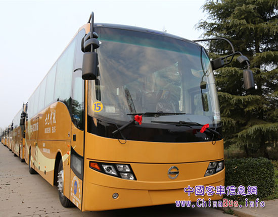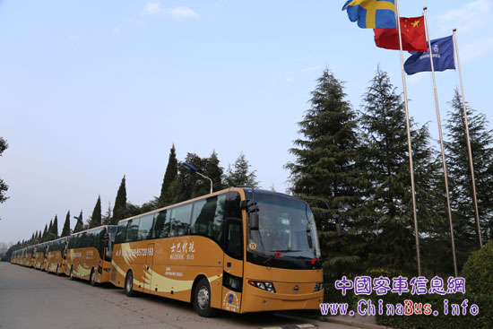 2014年11月28日,一輛輛整裝待發(fā)的西沃900i系列客車揮別西沃客車有限公司,踏上奔赴東莞現(xiàn)代旅游運(yùn)輸公司的征程。