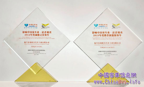 1月9日,中國年度客車行業(yè)的盛事之一、80萬讀者參與投票的行業(yè)評選——第九屆影響中國客車業(yè)調(diào)查評選活動在京召開。作為評選活動長期關(guān)注的客車企業(yè)大金龍,榮獲本屆影響中國客車業(yè)四項大獎: “2014年度中國市場推薦車型”、“2014年度海外市場推薦車型”、“2015年度新能源客車推薦車型”和“2014年度減排之星客車”。其中,“2015年度新能源客車推薦車型”、“2014年度減排之星客車”是最受關(guān)注的行業(yè)新能源車型大獎,兩大獎項花落金龍客車,代表著其新能源客車獨有的技術(shù)優(yōu)勢。
