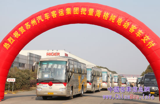 據(jù)不完全統(tǒng)計,在2014年最后一個月,海格新能源交車捷報頻傳:12月19日,向南京3家公司一次性交付210輛純電動大巴;12月23日,83輛純電動開赴常州、60輛純電動客車交付蘇州;12月26日,蘇州東山精密公司采購的45輛海格10 m純電動客車批量交付;12月29日,28輛海格純電動公交車在佛山市運營……