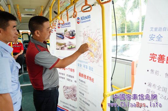廣東省宇通杯城市公共交通駕駛員節(jié)能大賽中,參賽選手觀摩了裝配有艾里遜T270R全自動變速箱的廣汽GZ6120SVI客車