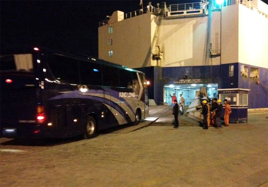 大年初一晚,61輛大金龍旅游車裝船發(fā)往伊拉克