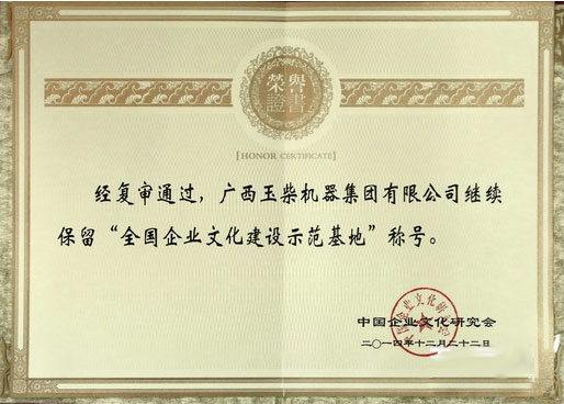近日,經(jīng)過中國企業(yè)文化研究會專家組嚴(yán)格復(fù)審,玉柴集團(tuán)繼續(xù)保留“全國企業(yè)文化建設(shè)示范基地”稱號。
