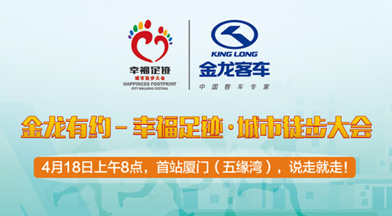 2015國(guó)內(nèi)首個(gè)城市徒步休閑活動(dòng)“幸福足跡·城市徒步大會(huì)”,由中國(guó)新聞文化促進(jìn)會(huì)體育委員會(huì)、智美控股集團(tuán),廈門金龍聯(lián)合汽車工業(yè)有限公司(簡(jiǎn)稱“大金龍”)攜手打造,將于4月18上午在廈門五緣灣感恩廣場(chǎng)幸福走起。