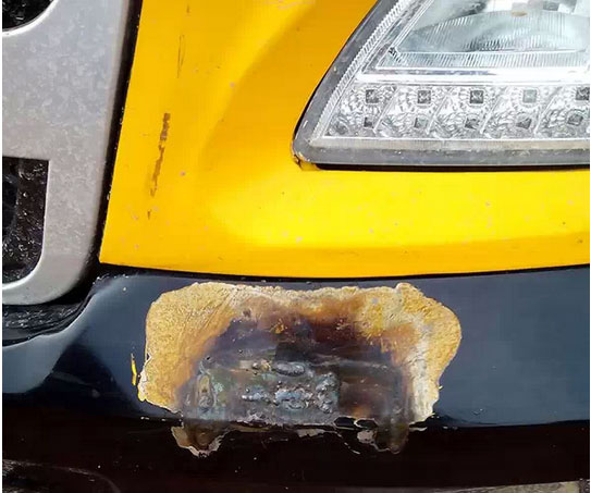 “黃河牌”校車前部保險杠的焊接痕跡