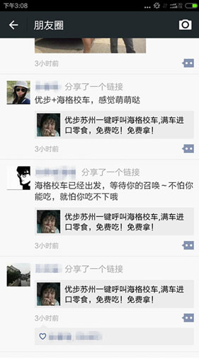 牽手Uber+1號店,強強聯(lián)手,跨界營銷,海格先生的潮男身份又一次得到了驗證。為了記錄這美好的一天,海格先生截屏保存了當天朋友圈的狀態(tài):