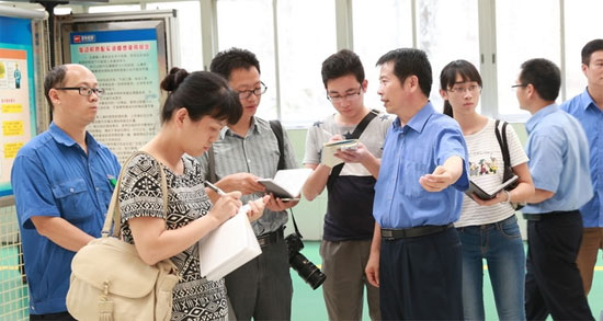 8月5日,自治區(qū)人力資源和社會(huì)保障廳組織新華社廣西分社、廣西日?qǐng)?bào)、廣西電視臺(tái)、廣西電臺(tái)、玉林電視臺(tái)等媒體采訪團(tuán)一行8人,就技能大師工作室高技能人才重點(diǎn)建設(shè)項(xiàng)目到玉柴采訪,玉柴集團(tuán)工會(huì)主席李呈杰熱情接待了客人。