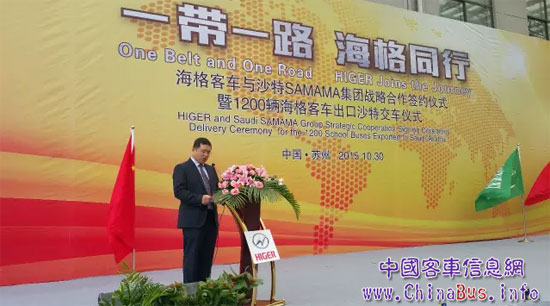 玉柴股份總裁吳其偉在儀式上致辭,代表玉柴機器向金龍集團及海格客車再次贏得海外超千臺大單表示熱烈的祝賀!向沙特的合作伙伴艾哈邁德先生表示衷心的祝賀和感謝!