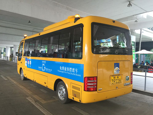 走出??诿捞m機(jī)場(chǎng)后,記者驚奇地發(fā)現(xiàn),航站樓前面停著的一輛“免費(fèi)旅客擺渡車”,竟然不是此前常見的豐田柯斯達(dá),而是我國(guó)自主客車品牌——宇通牌,也就是宇通大名鼎鼎的純電動(dòng)車型E7。