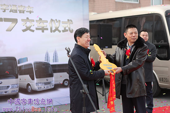 2月2日,15輛宇通T7高端商務車正式交付北京北汽出租汽車集團有限責任公司(簡稱“北汽集團”),北汽集團董事長、總經(jīng)理張峻峰,副總經(jīng)理李強、王進鋼,宇通銷售公司總經(jīng)理錢瑞瑜,宇通京津冀大區(qū)總經(jīng)理趙磊等領導出席了交車儀式。