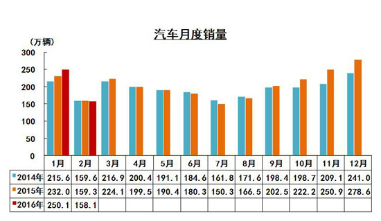 其中,2月份,汽車產(chǎn)銷量比上月明顯下降,比上年同期略有下降。2月份,汽車生產(chǎn)161.18萬輛,環(huán)比下降34.43%,同比下降1.31%;銷售158.09萬輛,環(huán)比下降36.94%,同比下降0.86%。其中,商用車生產(chǎn)20.94萬輛,環(huán)比下降30.64%,同比下降4.41%;銷售20.42萬輛,環(huán)比下降24.49%,同比增長3.90%。2月份,在商用車主要品種中,與上月相比,客車產(chǎn)銷呈較快下降;與上年同期相比,客車產(chǎn)銷明顯下降。