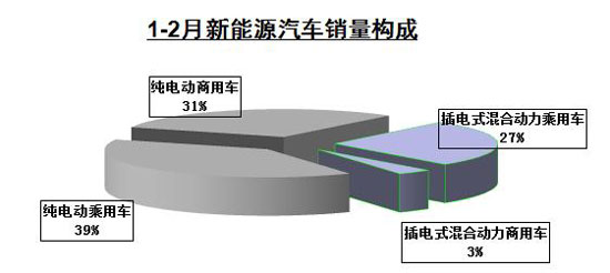 據(jù)中國汽車工業(yè)協(xié)會(huì)統(tǒng)計(jì),1-2月份,新能源汽車生產(chǎn)37937輛,銷售35726輛,比上年同期均增長1.7倍。純電動(dòng)汽車產(chǎn)銷分別完成27850輛和24835輛,比上年同期分別增長2.6倍和2.7倍;其中,純電動(dòng)商用車占比31%。插電式混合動(dòng)力汽車產(chǎn)銷分別完成10087輛和10891輛,比上年同期分別增長60.1%和68.5%;其中,插電式混合動(dòng)力商用車占比3%。