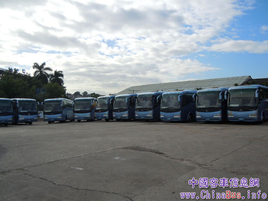 古巴停車(chē)場(chǎng)排放整齊的宇通客車(chē)