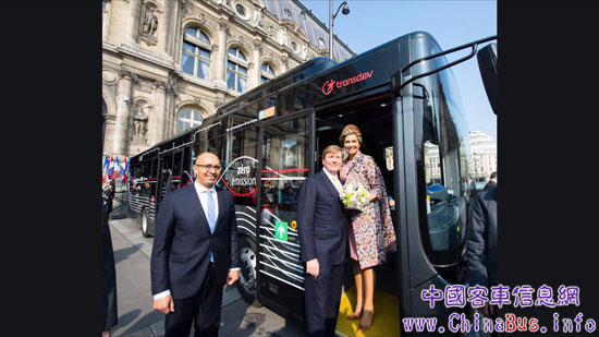 此次跨國(guó)合作,由荷蘭EBUSCO與法國(guó)運(yùn)輸公司Transdev進(jìn)行,雙方簽訂了10輛純電動(dòng)公交車的合作協(xié)議。在法國(guó)進(jìn)行國(guó)事訪問(wèn)的荷蘭國(guó)王威廉·亞歷山大與王妃馬克西瑪也親臨現(xiàn)場(chǎng)見(jiàn)證簽約儀式,并饒有興致地試乘了純電動(dòng)客車,對(duì)其性能稱贊不已。未來(lái),這一批次的公交車將會(huì)投入到大巴黎地區(qū)公交線路的運(yùn)營(yíng)。