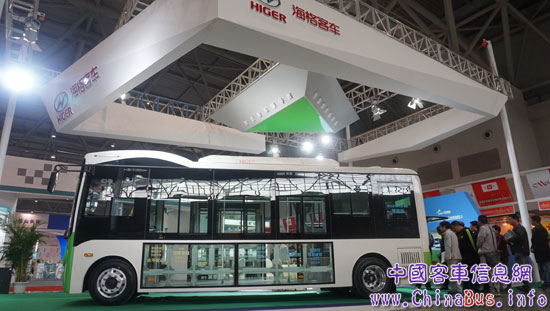 展會(huì)現(xiàn)場(chǎng)的蘇州金龍全鋁純電動(dòng)社區(qū)巴士