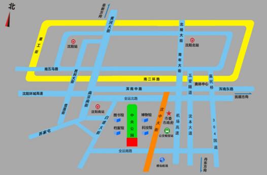 沈陽站方向乘坐公交車128路省博物館站下車,南行800米