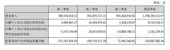 分季度主要財務(wù)數(shù)據(jù)