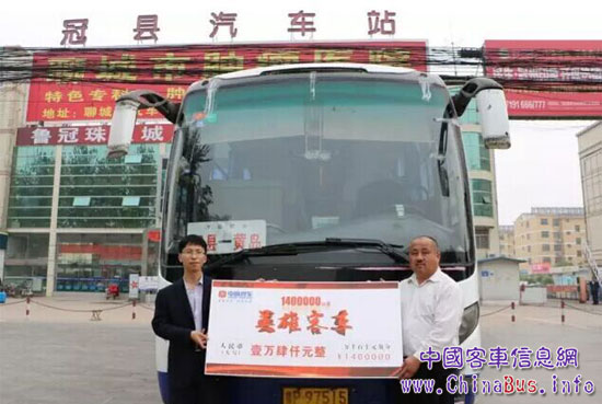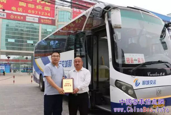 據(jù)了解,該車購置于2009年1月份,運(yùn)行時(shí)間接近8年,行程達(dá)到140余萬公里無大修,鑒于這輛客車的優(yōu)良性能及郭師傅取得的駕駛成績,2016年4月20日,聊城交運(yùn)集團(tuán)聯(lián)合中通客車對(duì)該客車和郭師傅進(jìn)行了榮譽(yù)獎(jiǎng)勵(lì),授予該車“中通英雄客車”榮譽(yù)稱號(hào),給予郭師傅現(xiàn)金獎(jiǎng)勵(lì)1.4萬元。在頒獎(jiǎng)當(dāng)天,記者也隨之來到了冠縣汽車站,見到了剛剛從黃島返回冠縣的這臺(tái)“英雄客車”及駕駛員郭師傅,了解他們背后的故事。