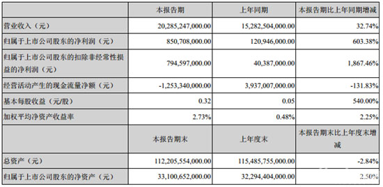 比亞迪4月28日發(fā)布2016年一季報(bào),報(bào)告期內(nèi),公司實(shí)現(xiàn)營(yíng)業(yè)收入202.85億元,同比增長(zhǎng)32.74%;凈利潤(rùn)8.51億元,同比增長(zhǎng)603.38%;基本每股收益0.32元。
