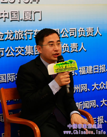 廈門金龍旅行車有限公司常務(wù)副總經(jīng)理彭東慶接受記者采訪