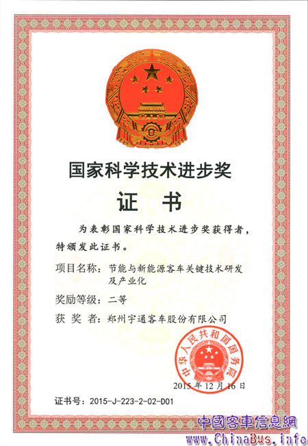 宇通??丶夹g(shù)榮獲國(guó)家科技進(jìn)步獎(jiǎng)